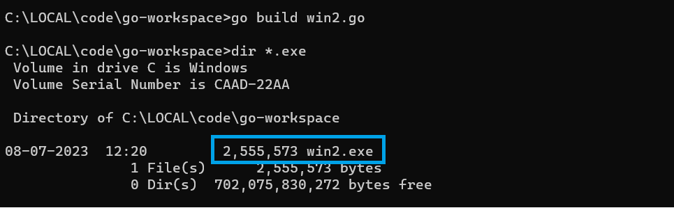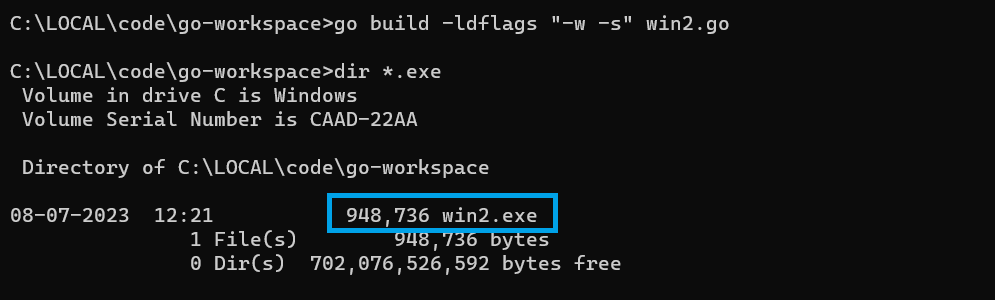 There is a significant reduction in the binary size. Quoting from Black Hat Go – Having a smaller binary will make it more efficient to transfer or embed while pursuing your nefarious endeavors. 😉