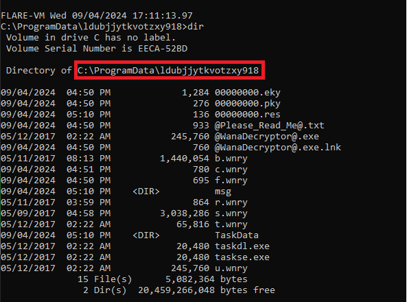 We see a new hidden directory named ldubjjytkvotzxy918 created under c:\ProgramData.