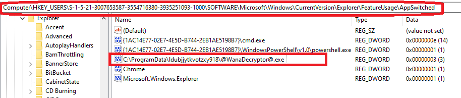 This key represents the number of times an application switched focus (was left-clicked on the taskbar). It shows the number of times the WanaDecryptor was minimized or maximized, as opposed to just launched.