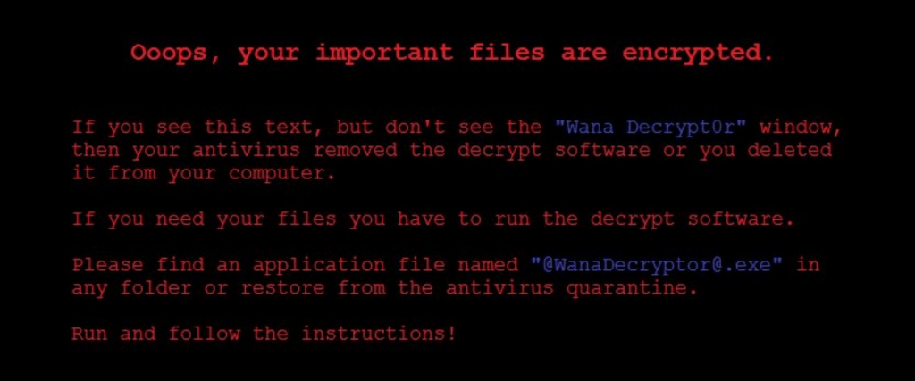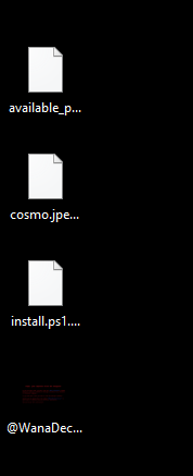 - A file named @WanaDecryptor@.exe shows up on the Desktop.