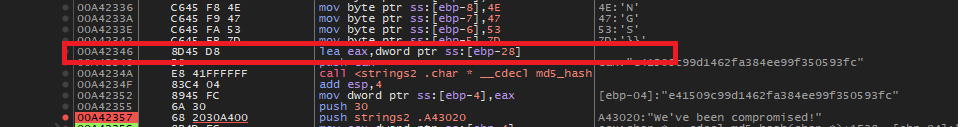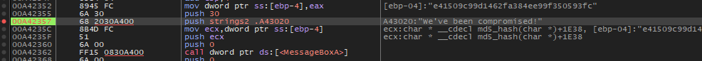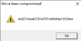 Let us rename this to strings3.exe and detonate it. We see the following MessageBox.