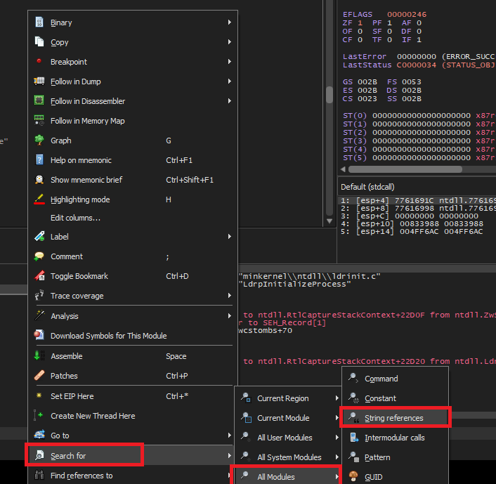 When the malware binary is detonated with INetSim turned on, it simply exits. When detonated without INetSim (and with elevated privileges), it starts its work. We want to see where this logic is hidden in the malware.