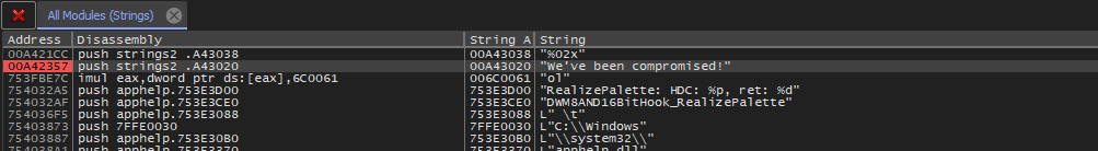 Now that we have the target hash, let us do a strings analysis of the sample to look for the flags.