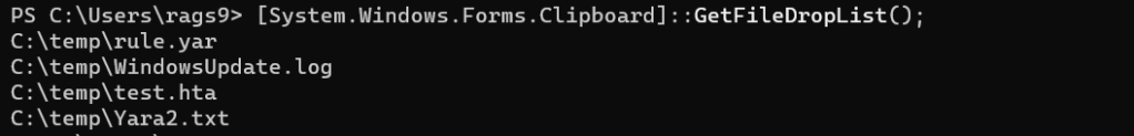 PS>[System.Windows.Forms.Clipboard]::GetFileDropList();